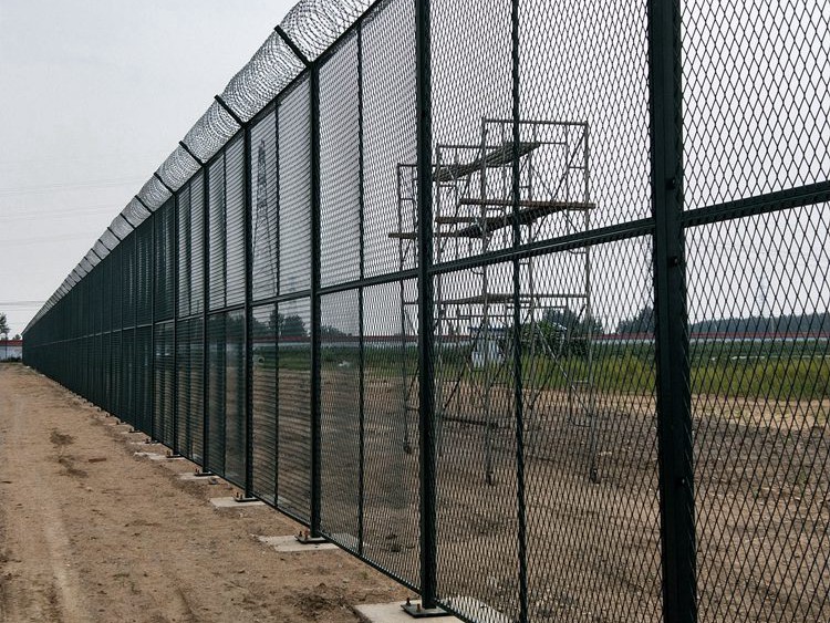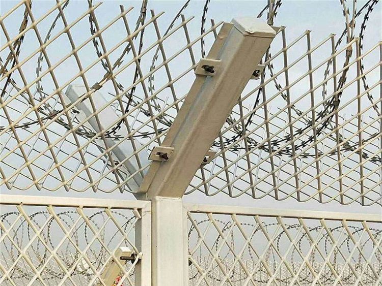 機場防御圍界網不僅是一種簡單的防護網和隔離網,它還可以設置在公路、橋梁等多個地方,能夠起到維護交通秩序,防止交通意外的發生和美化城市樣貌的功能。在機場護欄網頂部安裝刀片刺籠,很好的增加了安全防護性能,由V形支柱、焊接網和緊固件組成,不易變形。