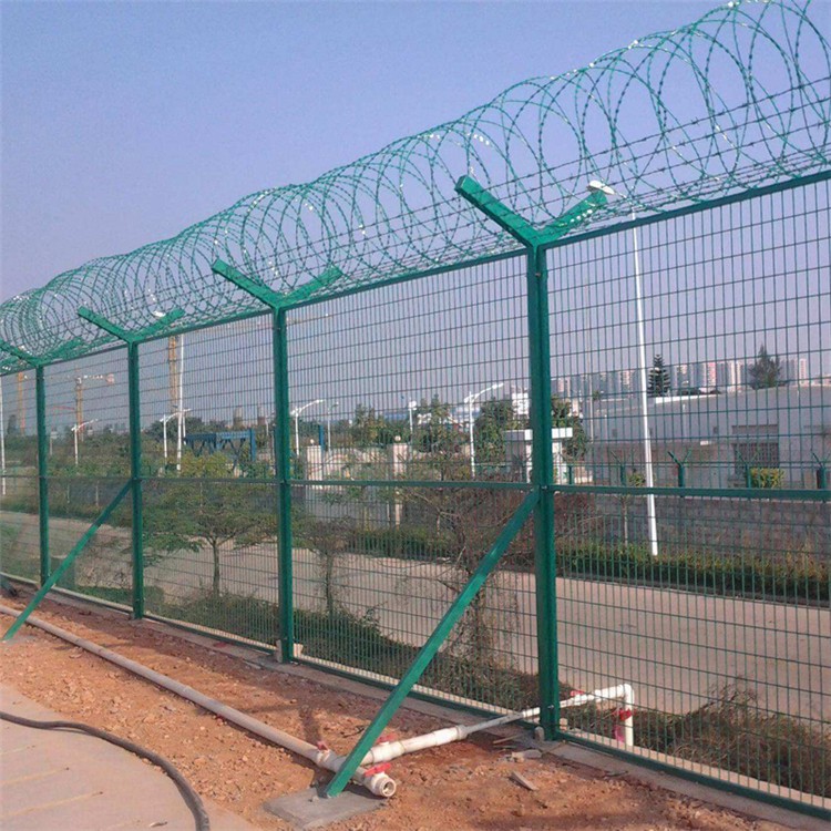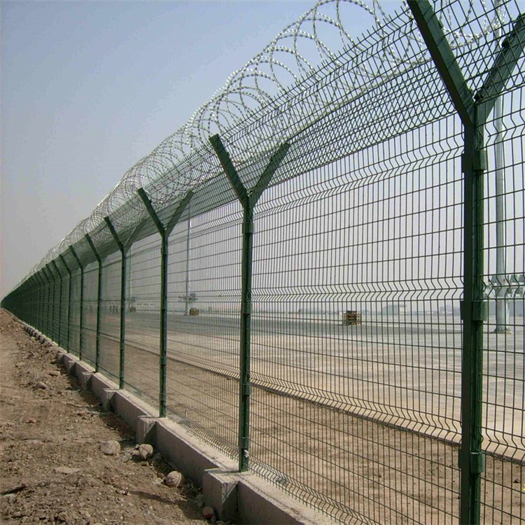這種新型機場隔離網(wǎng)一般由鋼筋焊接網(wǎng)、Y型防護立柱以及蛇腹式刀刺網(wǎng)等幾大主體組成。既有良好的通透性,又能起到強有力的安全隔離防護效果,頂部加裝刀刺網(wǎng),同時起到了美觀大方的作用,與周圍環(huán)境以及任何景觀、設備都能完美相融合,因此機場鋼筋網(wǎng)圍界常被大量應用于機場隔離,監(jiān)獄防護、軍事基地等特殊地帶的安全防護。