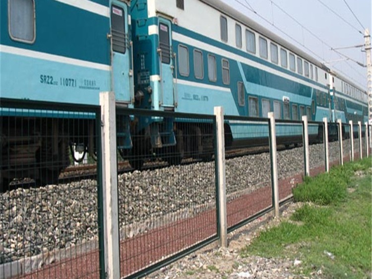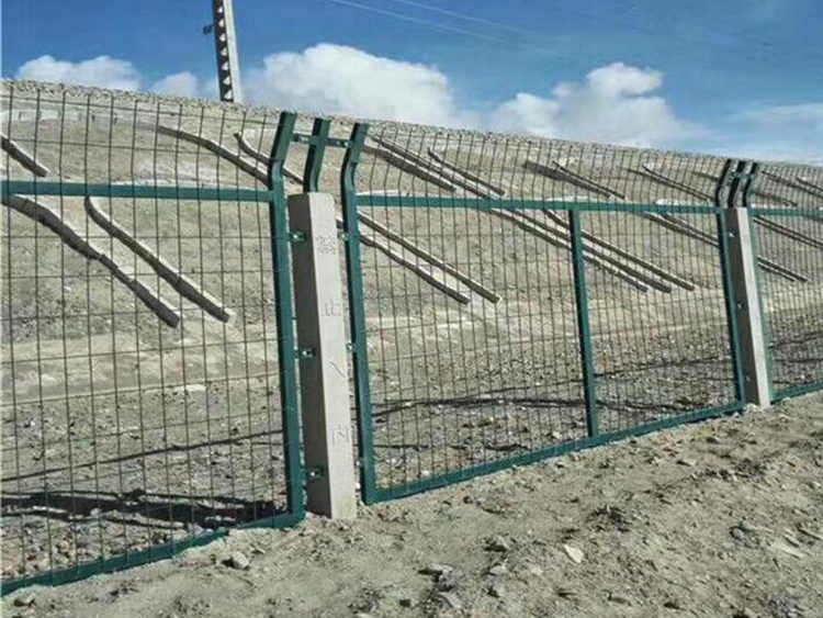 廣東鐵路護欄生產廠家為艾瑞金屬絲網有限公司,生產的產品起到隔離鐵道線路、防止行人、車輛穿越,兩側邊框各焊接四個邊框用連接板,其中三個通過防盜螺栓與立柱連接,頂部安裝彎頭小立柱,網片跟立柱采用防腐防盜螺絲和連接件連接在一起。