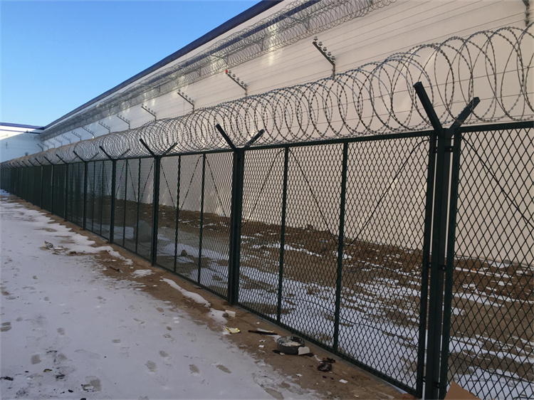 監獄鋼網墻隔離網用在監獄是采用鋼板網沖壓而成,具有良好的震懾、防翻越效果,材質堅硬,高強度,高張力,造型設計獨特,不宜觸摸,因而能達到極好的防護隔離效果。,常用于監獄圍墻使用。在使用的過程中一般會采用2.5米,4米高,3米寬為常用款。也可根據圖紙定制。