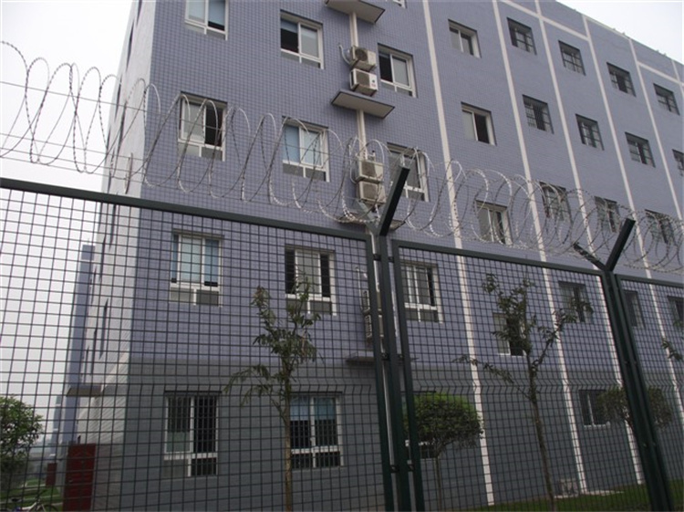 2、監(jiān)獄安全網(wǎng)圍欄設(shè)計(jì)要求整體連貫一致,框網(wǎng)方正,對角線誤差不大于2cm。監(jiān)獄安全網(wǎng)圍欄網(wǎng)片安裝離地距離5-8cm,框網(wǎng)與立柱采用螺栓固定邊耳式連接網(wǎng)頁每邊與立柱連接點(diǎn)不少于六處。