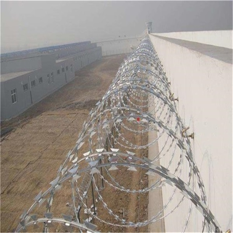 按材質(zhì)來(lái)分貴的就是304不銹鋼刀刺網(wǎng),其次是不銹鐵刀刺網(wǎng),再就是熱鍍鋅刀刺網(wǎng)。刺刀圈安裝一般采用角鐵來(lái)加以固定,根據(jù)刺刀圈的圈徑來(lái)決定角鐵的高度,一般情況是每隔3米一個(gè)支撐角鐵,直接插入圍墻里面,然后加以固定,再把刀刺網(wǎng)安裝上去,在中間拉上3-4根鐵絲,卡子固定上即可。V型支撐是用方管、圓管或者角鐵焊接而成的,整體的結(jié)構(gòu)采用三角穩(wěn)定原理,支架兩個(gè)頂端和最下端都會(huì)預(yù)先打好孔,方便安裝的時(shí)候穿鐵絲固定刺繩的。