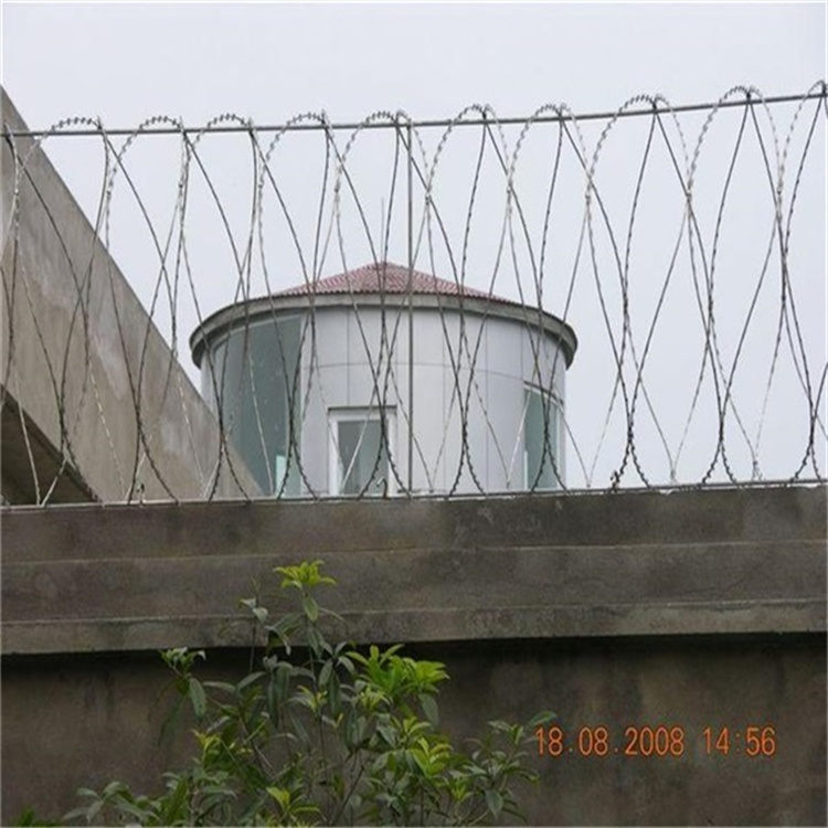 圍墻刀片刺網V型支架采用50*50mm方管做支架,方管上焊有與拉絲連接的L型鐵鉤,底座與圍墻連接采用200*200mm鋼板大大的增強了支架與墻體的牢固度。V型支架里外均采用熱浸鋅處理,使支架的防腐壽命長達30年以上。蛇腹形刀刺網區別主要在于刀刺網的刀花形狀。按刀刺網的刀花形狀可分為: BTO-22、BTO-15、BTO-22、BTO-30、CBT25、CBT60、CBT-65。材質可大致分為:熱鍍鋅刀刺網、不銹鐵刀刺網、不銹鋼刀刺網。按刀花形狀來說,價格貴的就是CBT60,主要是因為它的原材料比較浪費。按材質來分貴的就是304不銹鋼刀刺網,其次是不銹鐵刀刺網,再就是熱鍍鋅刀刺網。