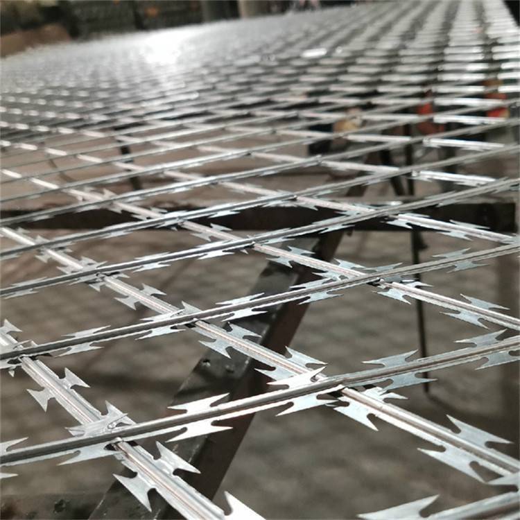 刀片刺網也可以做成刀刺網護欄網的結構非常簡單,但卻非常實用。它由一系列平行排列的金屬線構成,這些金屬線上裝有鋒利的刀片,形成了一個堅固而具有威懾力的障。刀刺網通常使用不銹鋼、鍍鋅鋼或鐵絲制造,以確保其耐久性和長期穩定性。刀刺網的主要功能是預防入侵和提供安全保護。當有人試圖越過刀刺網時,鋒利的刀片會立即對其造成傷害,從而有效地阻止其進一步行動。這種刺激性的設計可以迅速引起潛在入侵者的注意,并迫使他們放棄入侵的企圖。總體而言,刀刺網是一種經濟實用而高效的安全防護產品。