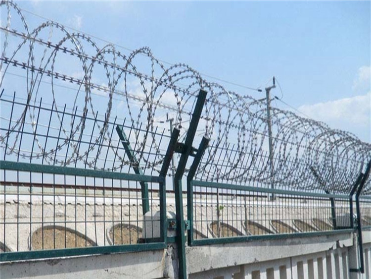 標簽: 監獄防逃鋼網墻監獄圍墻周界鐵絲網刀刺V型網支架
