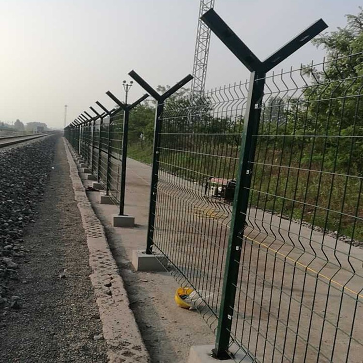 立柱: 60*80mm,80*80mm,80*100mm,100*100mm等矩形鋼,頂部焊有V型之架,用以架設蛇腹形刀刺網.機場圍界可以應用在新建機場、舊機場擴建等的飛行區安全防護,根據工程項目的不同,可以設立單層圍界或者雙層圍界。現有的機場飛行區大多是單層界,部分采里了雙層圍,需要根據機場圍界網的具體應用和防護等級,采用單層或者是雙層重界進行防護。除了用干機場封閉,還可用干私人地域、 場區圍網, 開發區隔離網等使用。