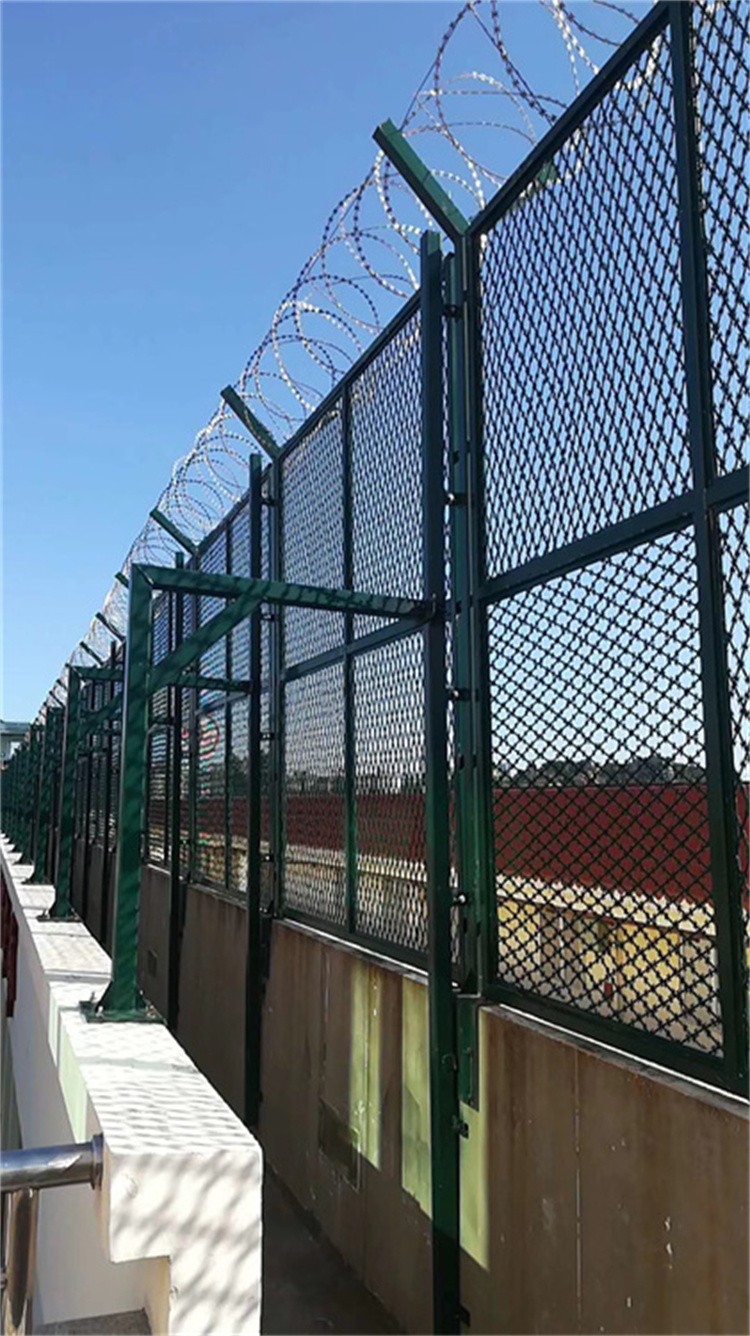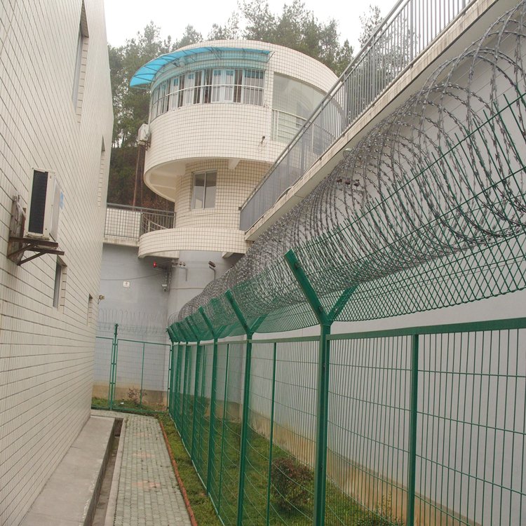 看守所防攀爬隔離網的高度和間距應該符合安全要求。圍欄網的高度應該足夠高,以防止犯人或其他人員攀爬或跳過圍欄般來說,看守所墻上圍欄網的高度應該在2.5米以上。圍欄網的間距應該足夠小,以防止犯人或其他人員通過圍欄網的縫院逃脫或投放非法物品。一般來說,圍欄網的間距應該小于10厘米。最后,看守所墻上圍欄網的外觀應該整潔美觀。圍欄網應該經過精心的設計和加工,以確保外觀整齊、線條流暢。圍欄網的表面應該經過防腐處理和噴涂,以增加圍欄網的耐久性和美觀度。圍欄網的顏色應該與周圍環境協調,不引起不必要的注意和爭議。看守所墻上圍欄網的質量要求非常高,需要考慮材料的堅固耐用性、結構的牢固穩定性、高度和間距的安全性以及外觀的整潔美