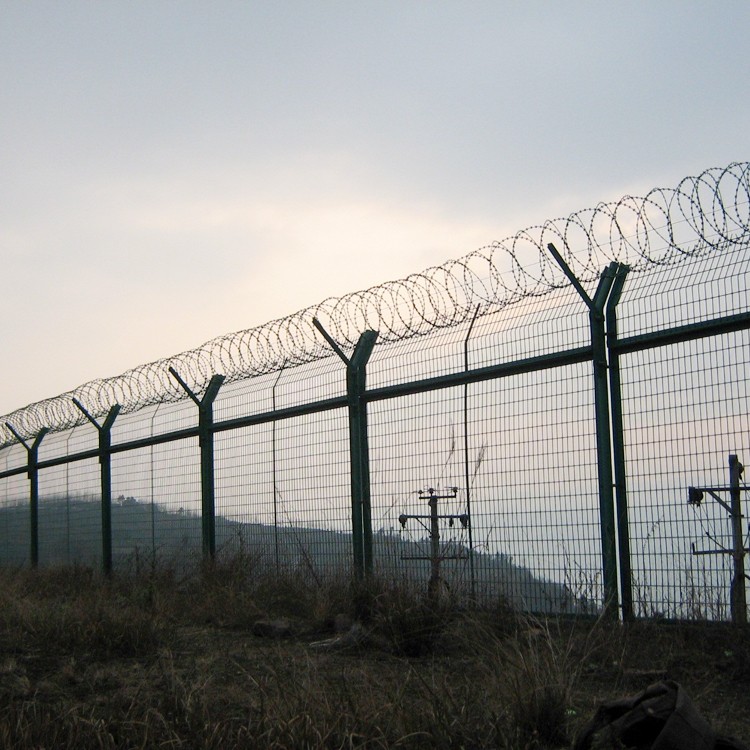 機場圍欄網又稱作“機場安全防御護網”,是由V型支架立柱,加強型焊接片網,安全防盜連接件和熱鍍鋅刀片刺籠組成強度和安全防御性級別很高。