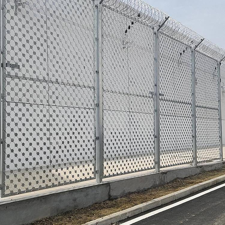 梅花刺隔離網最常用的表面防腐處理方式為整體熱鍍鋅,防腐性能好,不易生銹。常用于監獄、看守所、核電站、軍事基地等高安全場所