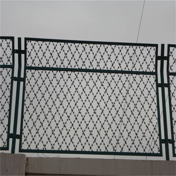 菱形焊接刀片刺網(wǎng)刀片刺網(wǎng)中間焊接的刀片刺網(wǎng)和蛇腹網(wǎng)結(jié)合使用,使人望而卻步,擊破人的僥幸心理。