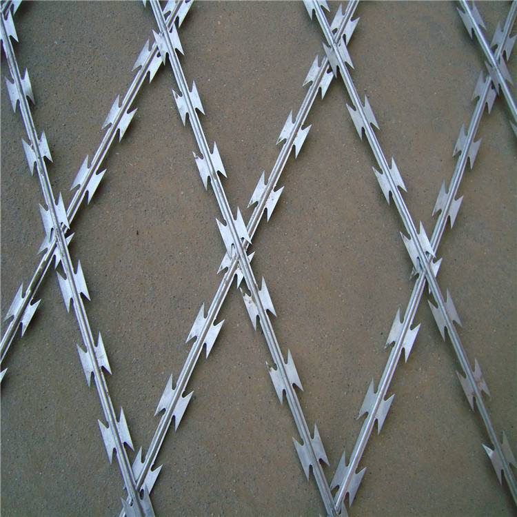 薄板沖壓出尖銳的刀片形狀,高張力鍍鋅鋼絲或不銹鋼絲做芯線組合而成的阻絕器材。