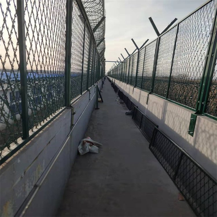 公安局看守所巡邏道金屬隔離網(wǎng)也稱為看守所鋼網(wǎng)墻、監(jiān)獄護(hù)欄網(wǎng),是非常重要的監(jiān)獄安全防護(hù)設(shè)施,由焊接鋼網(wǎng)加蛇腹式刀刺網(wǎng)組合而成。產(chǎn)品具有結(jié)構(gòu)新穎、堅(jiān)固緊密、網(wǎng)面平整、網(wǎng)孔均勻、刀鋒銳利、防攀爬、抗腐蝕性強(qiáng)等特點(diǎn)。建設(shè)于監(jiān)獄的內(nèi)外墻地面及高墻之上,網(wǎng)墻內(nèi)側(cè)或頂部加裝蛇腹形刀刺網(wǎng),形成一道高不可攀、難以逾越的隔離障礙。配臺(tái)高壓打擊電網(wǎng)、各種監(jiān)控報(bào)警設(shè)備確保監(jiān)獄安全萬無一失。