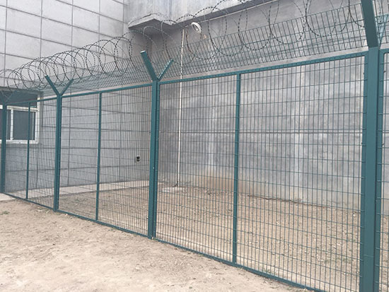 拘留所用的隔離網統稱為隔離網,是—種防御性極高的場地金屬封閉墻,可平地安 裝和高墻安裝,恐嚇作用好,可以有效的防止攀爬和逃跑 ;拘留所隔離網刺網頂部加裝蛇腹形的刀刺網,是近幾年新發展起來的隔離能力較強的防護產品,外觀美麗又讓人不寒而栗拘留所隔離網欄的規格: