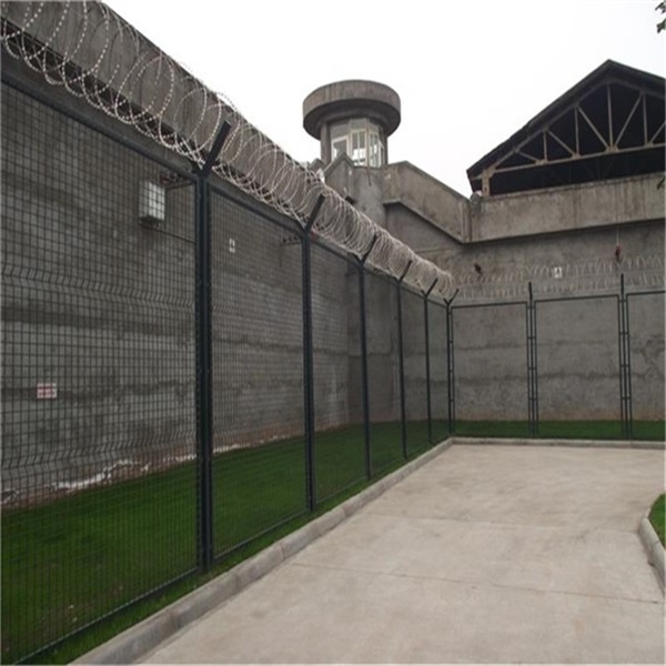 立柱不應突出到主要的防攀爬側。如果這是不可避免的,攀爬設施應該加強。柱子的頂端應該是尖錐形的。在網墻與監獄墻的交接處應增設蛇腹刺網等防攀爬設施監獄隔離網應采用“熱浸鍍鋅表面噴涂” 的雙重防腐處理,設計防腐周期不應少于10年,監獄防爬護欄的頂部應設有蛇腹刺網。蛇腹刺網應由304不銹鋼制成,圓直徑為600毫米,長度不小于每米7圈,圓間距均勻。刀片形式應為BTO-22(芯線直徑為2.5毫米±0.1毫米,刀片厚度為0.5毫米±0.05毫米,刀片長度為22毫米±1毫米,刀片寬度為10毫米)