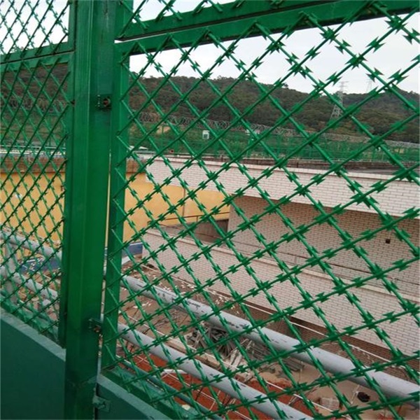 刀刺網(wǎng)這種護欄網(wǎng)是一種近些年剛剛鼓起的一種保護、別離作用好的新的護欄網(wǎng)樣品,它是使用了鋼板壓制成的包裹在鐵絲上,用這種鍍層的鋼板或薄片當成刀片的一種護欄網(wǎng),是用張緊力很強的鐵絲做成的,尖銳的刀片讓人看起來十分的美觀大方,但也使人看到就會遠離敬畏的一種護欄網(wǎng),從心理上就對大家起到了阻撓和恐嚇的作用。