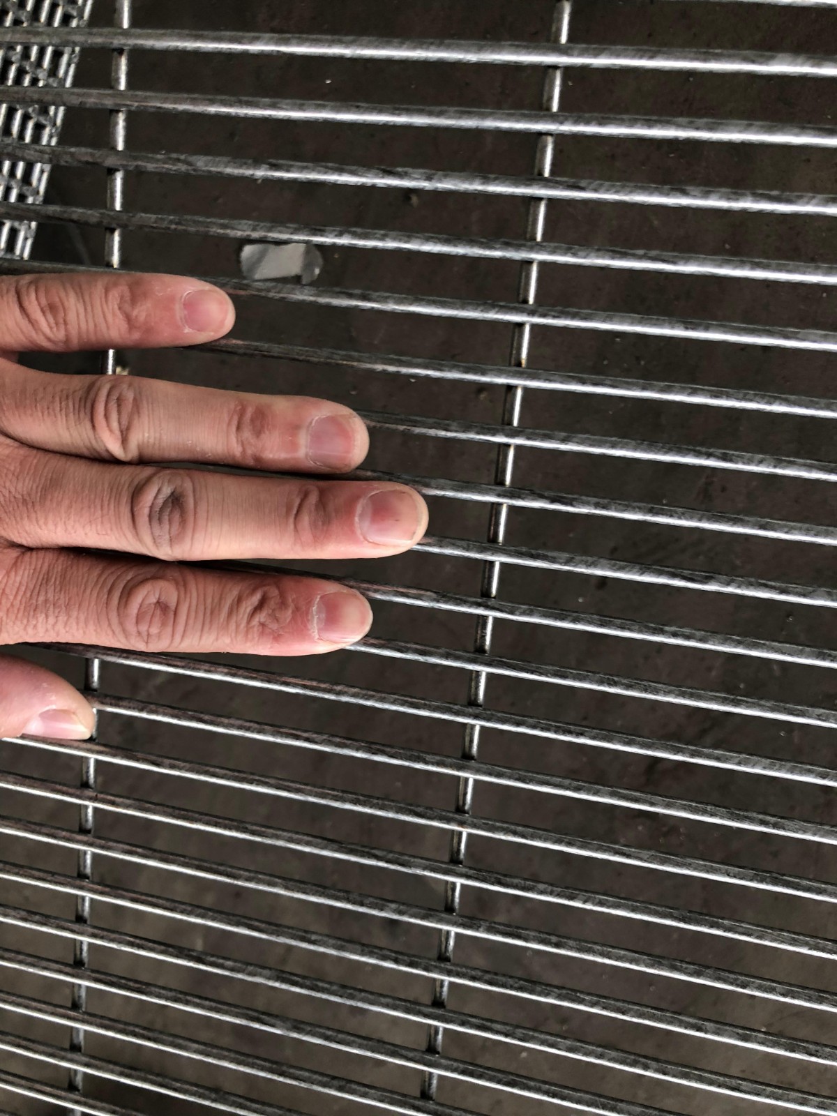 一說到監獄358密紋大家就能想到是密密麻麻的紋路,確實是,我們常用的規格在12.5*100mm,12.5*76mm在加上最后進行的靜態噴塑,也會增加一些厚度,這也就是我們看到的我們能看見的358密紋網,最大的優點就是防攀爬,因為這種類型的護欄網孔比較小,所以一般的攀爬工具或者手指都很難攀爬,就算借住大剪刀這些工具也很難去剪斷它,在安全防護方面絕對是沒問題的!