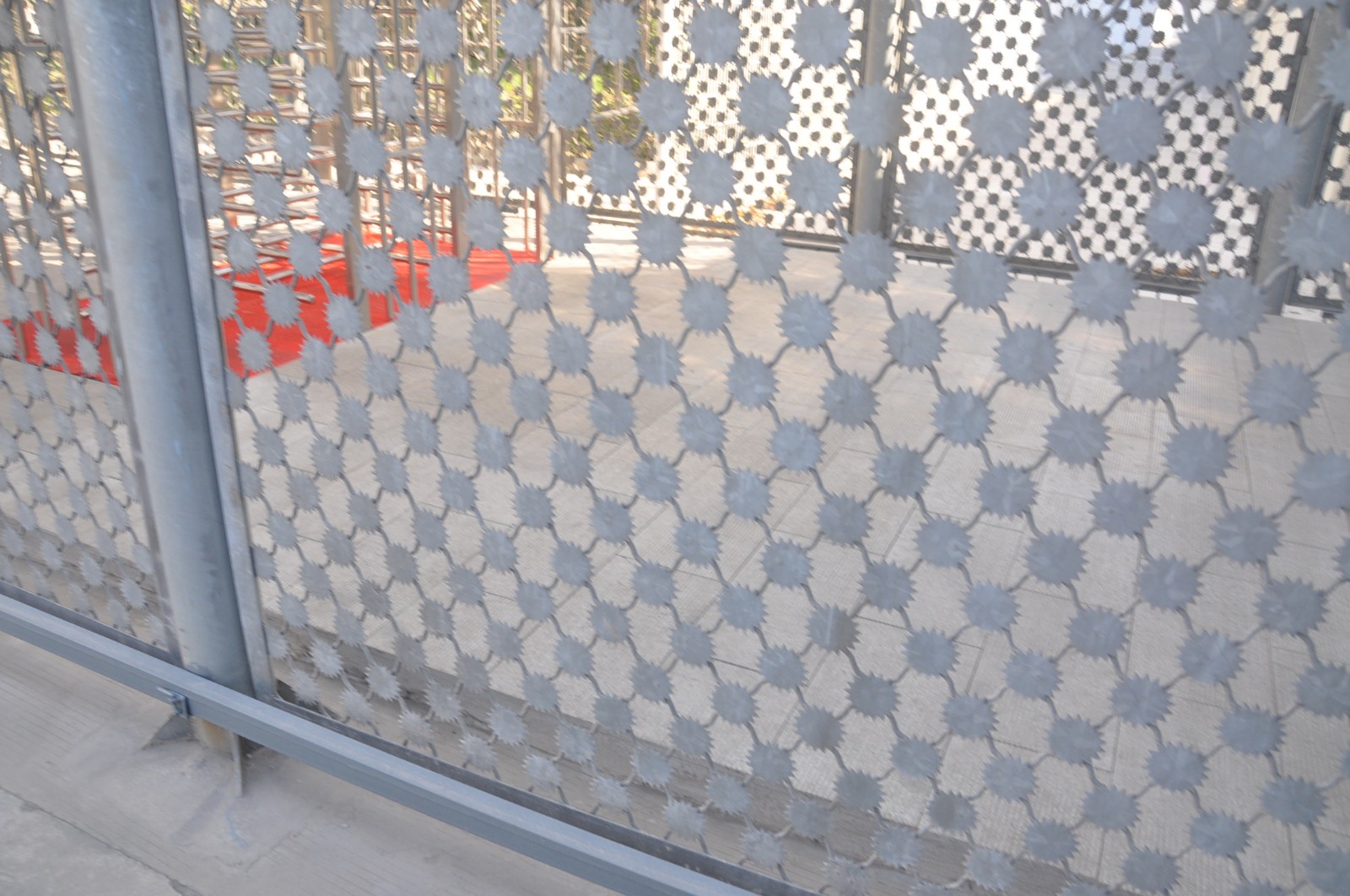 1.監獄防攀爬隔離網的梅花刺片由Q235低碳鋼板沖壓而成,其直徑大于7.5m,刺片厚度為2.0mm.