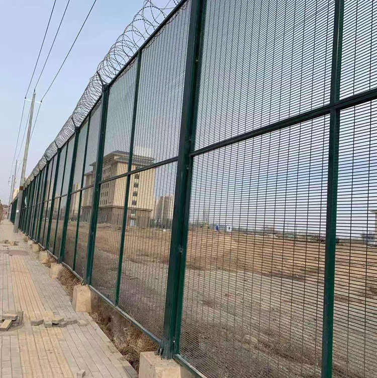 監獄防逃脫隔離網采用高強度的刀片刺網與普通防護網的結合,由V型支架立拄,加強型焊接片網,安全防盜連接件和組成。監獄護欄網監獄刀片鋼網墻網格結構簡練、便于運輸、安裝不受地形起伏限制,特別是對于山地、坡地、多彎地帶適應性強。