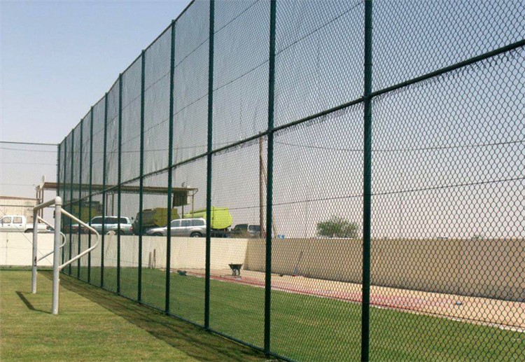 室外球場勾花圍網是主要用在室外的一種球場圍網,為什么球場會使用勾花網子來進行安裝呢?因為勾花網是包塑的表面處理方式,具有一定的彈性網面,會在球體接觸后,會有一定的反彈力,避免人員和觀眾席不會受傷害。高度較高的室外球場勾花網能夠做成上下銜接的兩塊,一般到達4米以上時需求拼接,由于勾花網的寬度一般只能到4米,再寬的話就織不了了。立柱的固定方法一般有預埋和法蘭盤固定兩種。